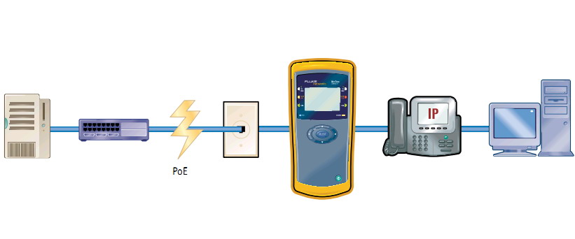 在部署PoE服務(wù)或安裝供電設(shè)備之前,需要對(duì)以太網(wǎng)供電(PoE)鏈路特性進(jìn)行充分分析。通過(guò)檢驗(yàn)PoE線對(duì)、線路電壓和電流,以確保成功的部署。PD和PSE之間在線放入 NetTool II 系列,以診斷和排除PoE鏈路配置問(wèn)題。