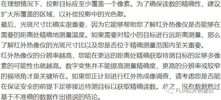 光斑尺寸比理論值僅能反映單一像素內(nèi)非常小范圍的溫度,但是單一像素測量值可能不準確的原因有很多: