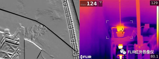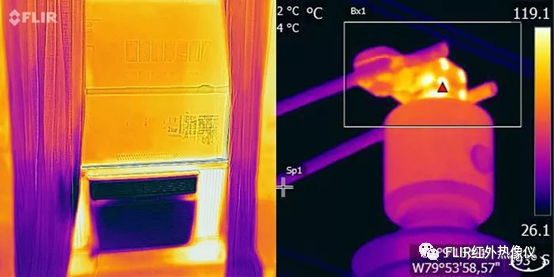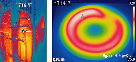 左圖為測(cè)量窯爐溫度,溫度超過(guò)測(cè)溫范圍時(shí),熱像儀正在猜測(cè)溫度