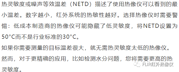 這是辨別熱像儀好壞的一個(gè)重要因素,成像區(qū)域和目標(biāo)的大小將決定所需的分辨率。小物體檢測(cè)或者遠(yuǎn)距離檢測(cè)將需要更高的分辨率。