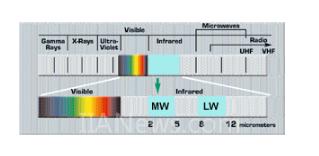 紅外線或熱成像技術(shù)是一種通過使用紅外成像測量儀“查看”或“測量”物體輻射熱能的技術(shù)。熱能或紅外線能量因其波長過長,無法被人眼感知,屬于不可見光。作為電磁頻譜的一部分,我們可探測其熱度。在紅外世界中,它又區(qū)別于可見光,即只要物體的溫度在絕對零度以上就會向外輻射熱量。即使溫度極低的物體,如冰塊,也會向外輻射紅外線。